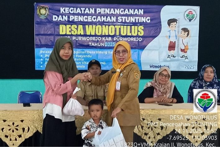 Kegiatan ini merupakan upaya berkelanjutan Pemerintah Desa Wonotulus dalam menekan angka stunting serta meningkatkan kualitas kesehatan ibu dan anak. Dalam kegiatan tersebut, diberikan dukungan dan bantuan gizi kepada 6 orang ibu hamil (Bumil) serta 12 balita yang menjadi sasaran program.