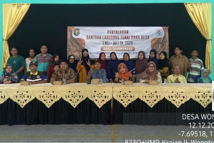 Kecamatan Purworejo — Kasi Pemberdayaan Masyarakat Kecamatan Purworejo, Purwaningsih, S.E., menghadiri acara penyerahan Bantuan Langsung Tunai Dana Desa (BLT DD) Tahap IV yang dilaksanakan di Desa Wonotulus pada Jumat, 12 Desember 2025, pukul 10.30 WIB.